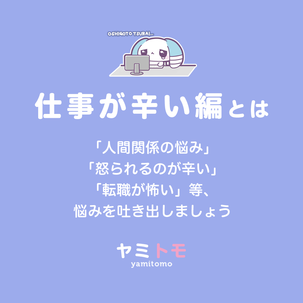 ・《仕事が辛い編/将来が不安編/恋愛が苦手編》→事前に悩みを書いておけるので、共感してくれる人とつながりやすいです✨